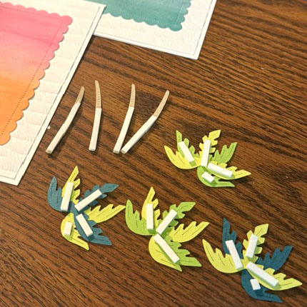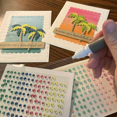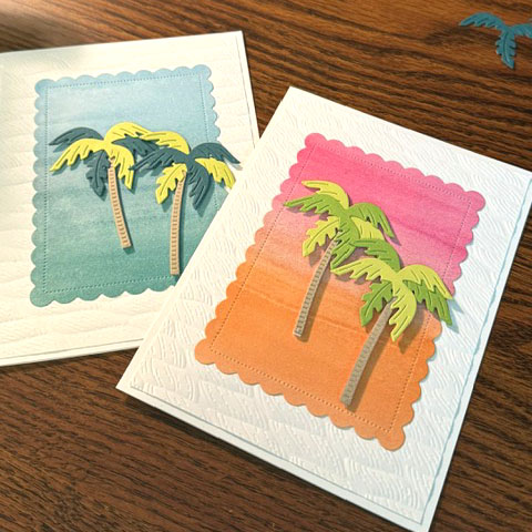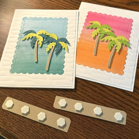 - Optional – add Foam Adhesive Strips to the palm tops and trunks to add dimension and adhere over the color panel.