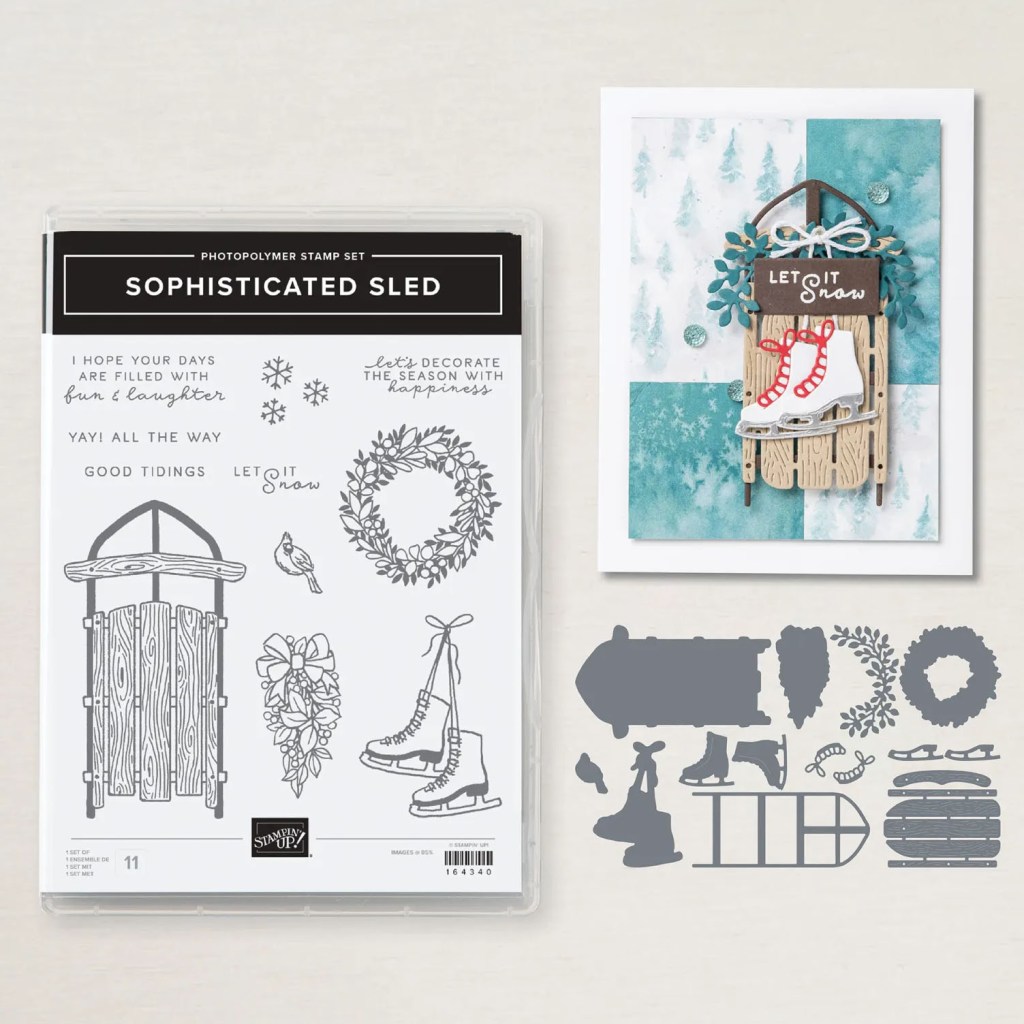 The Sophisticated Sled Bundle by Stampin’ Up brings back fond winter memories! This bundle features beautifully designed, winter-themed stamps paired with perfectly fitting sentiments, plus coordinating dies that craft the most charming little sled and skates.