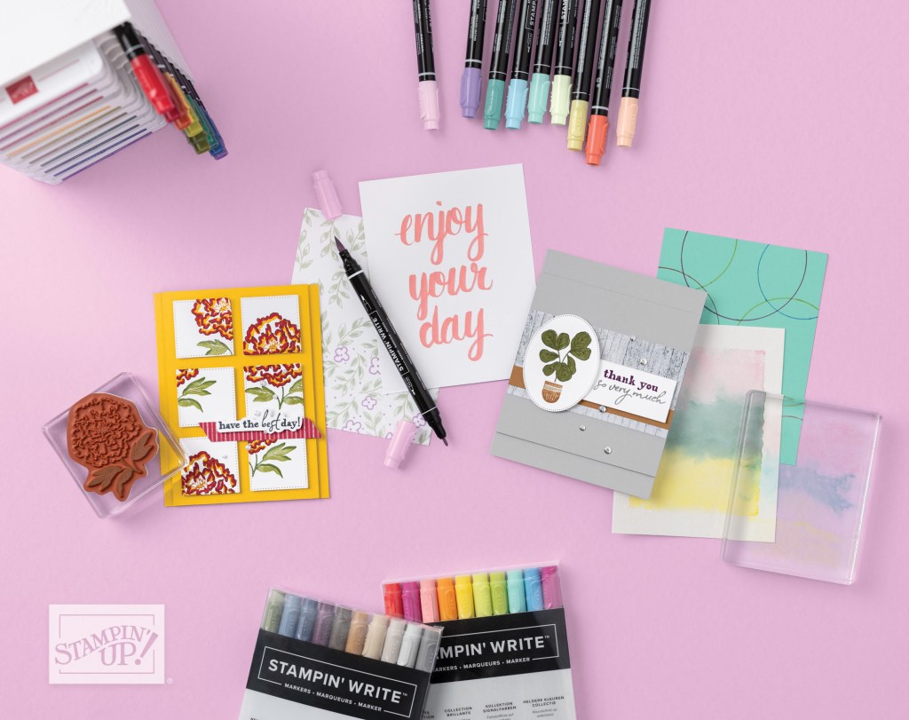 Choice 1: Get $125 worth of product PLUS a choice of two Stampin’ Write Marker Assortment packs AND the Handmade Designs Cling Stamp Set (an exclusive stamp set designed to work with the markers). That’s a $216 value for just $99!