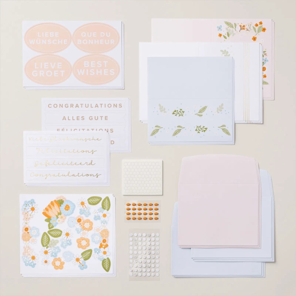 I love, love, love this kit—and once you see it in action, you will too! The So Much to Celebrate Kit from Stampin’ Up! is absolutely beautiful with its soft pale peach and pink tones, gold foil accents, and delicate floral details—the pictures truly don’t do them justice. Whether you’re congratulating a graduate, toasting a newlywed couple, or welcoming a sweet new baby, these handcrafted cards are simply stunning.