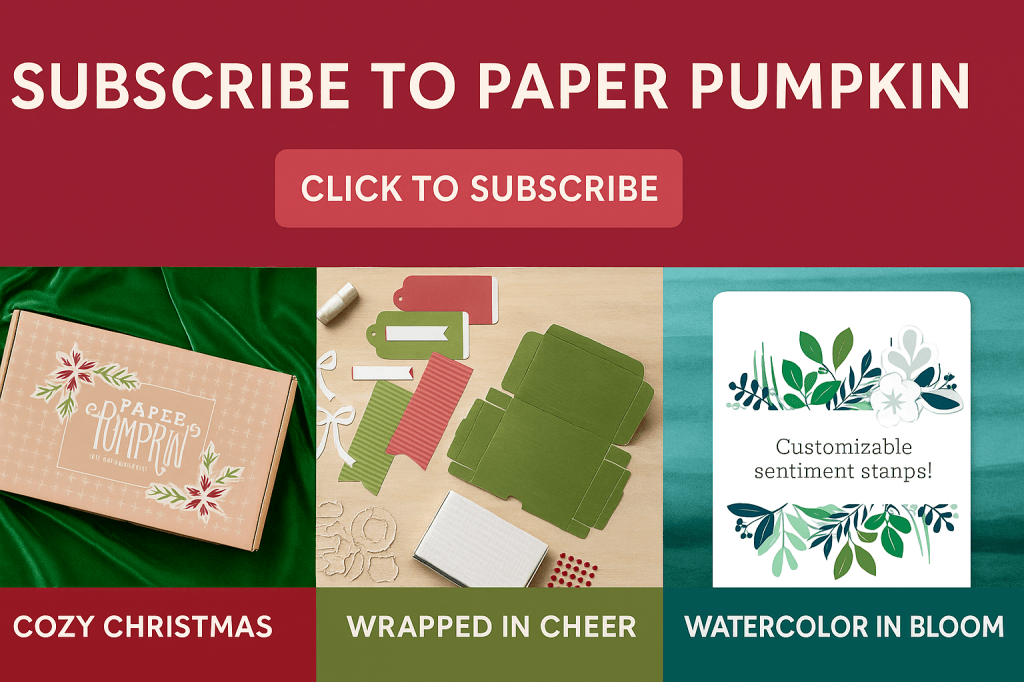 Subscribe to Paper Pumpkin and enjoy a monthly, all-inclusive crafting kit that delivers creativity straight to your door! Each box is a fun surprise filled with exclusive supplies—like a photopolymer stamp set, a Classic Stampin’ Spot™, and step-by-step instructions—to help you create beautiful cards, tags, gift packaging, and more. Whether you’re a seasoned crafter or just starting out, Paper Pumpkin makes it easy (and fun!) to get creative every month.