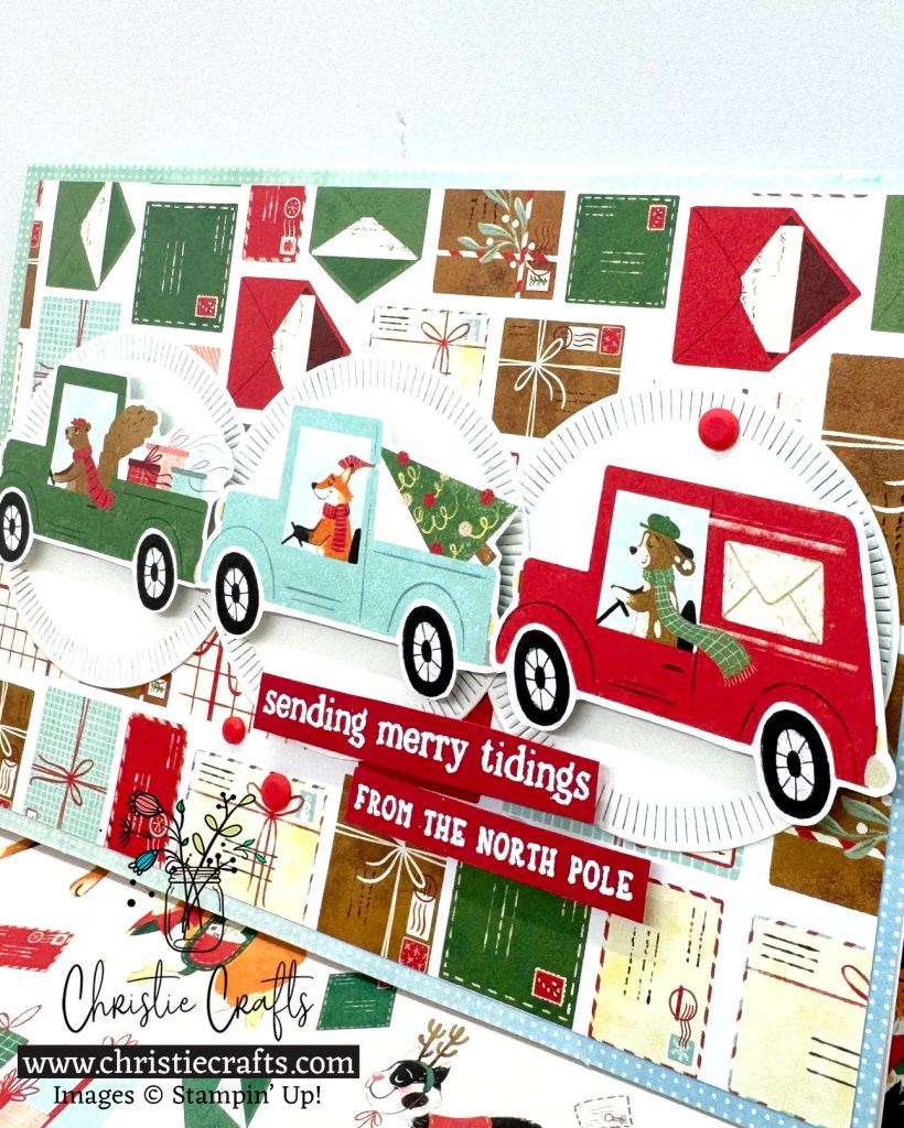 Head over to the Christie Crafts YouTube channel to watch a quick video showcasing all the products in the North Pole Delivery Suite Collection and create this card with me! This collection truly comes to life once you start crafting with it. Below you’ll find a few project ideas that show just how fun, festive, and effortless holiday creating can be with this adorable suite.